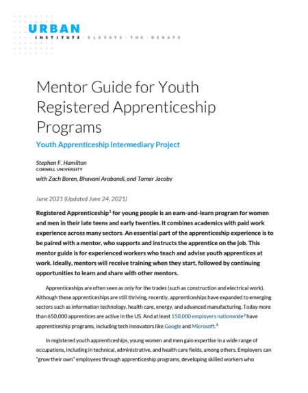 This introductory guide provides mentors who advise youth apprentices or support apprenticeship programs at work with tips, guidance, and resources.